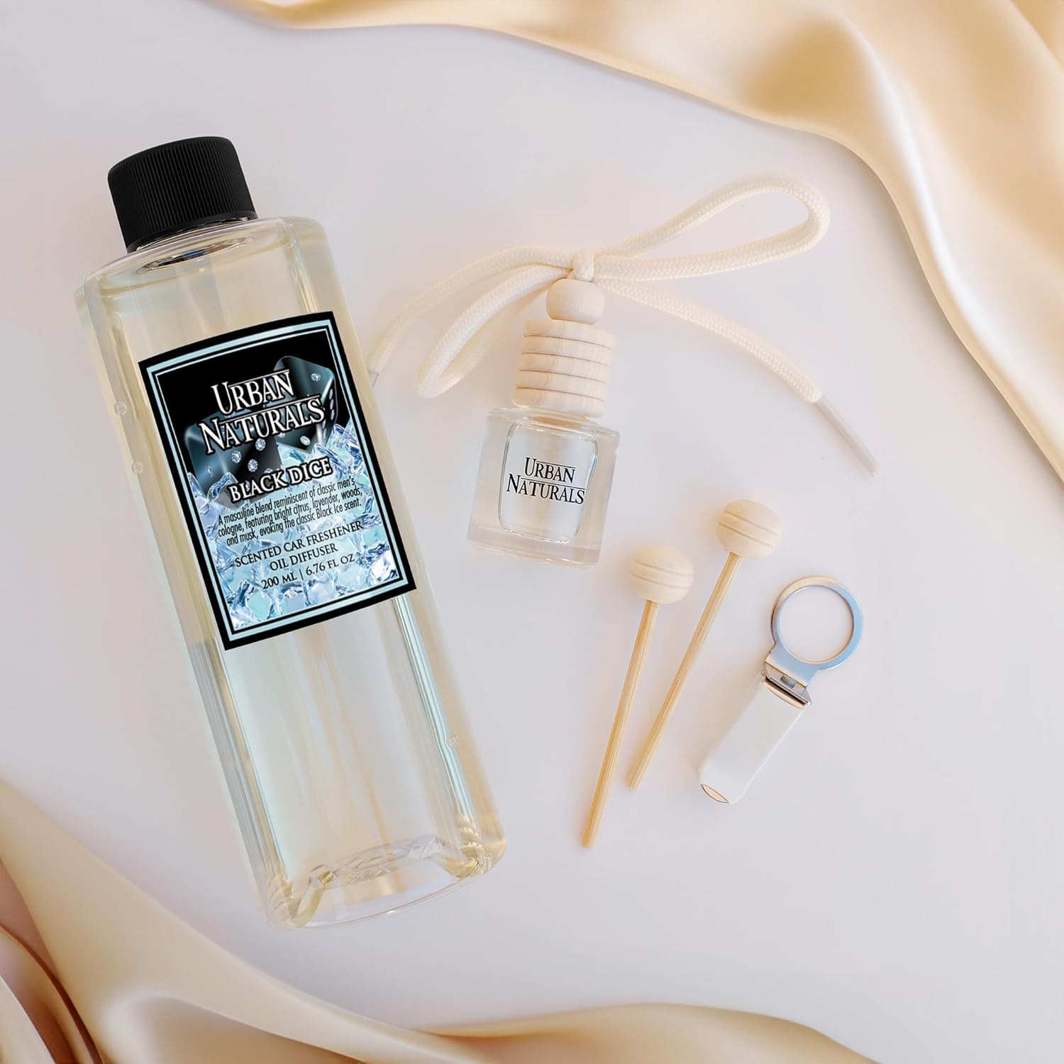BLACK DICE: A masculine blend reminiscent of classic men's cologne, featuring bright citrus, lavender, woods, and musk, evoking the classic Black Ice scent.