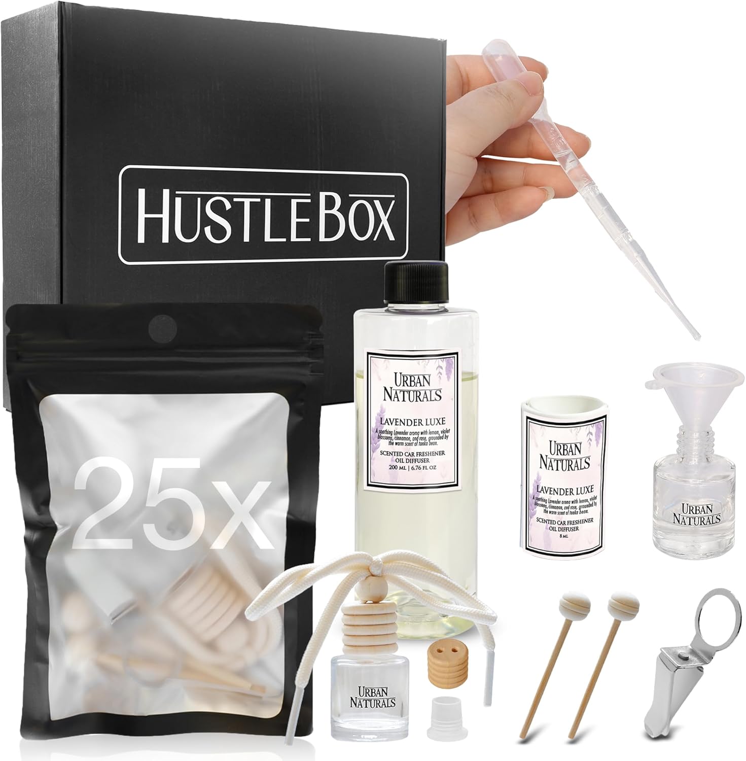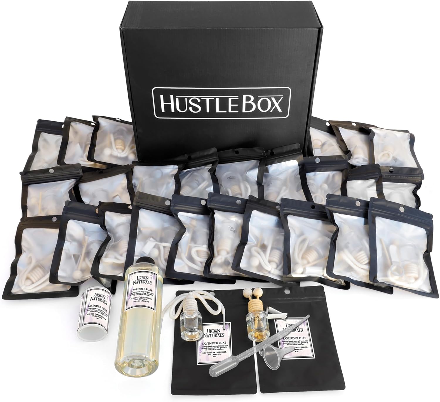 All-Inclusive Set includes everything you need to fill, assemble, and package 25 Car Air Freshener Sets:
