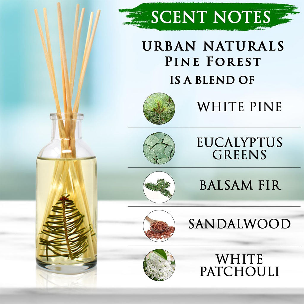 Urban Naturals’ Pine Forest Reed Diffuser is one of our bestselling fragrances, crafted with premium fragrance oils for a best long-lasting home fragrance experience. This natural reed diffuser makes an elegant addition to your décor while filling your space with the comforting aroma of a winter forest. Perfect as a home reed diffuser for holiday gatherings or to enjoy year-round.