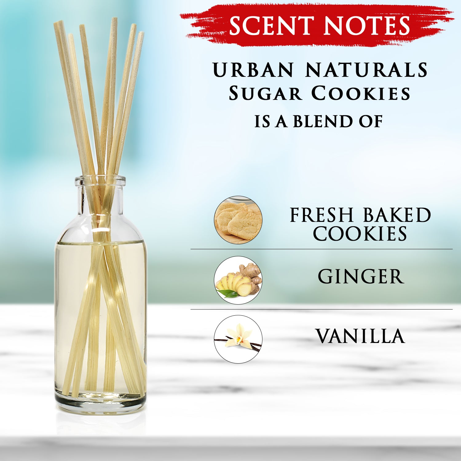 Ginger and vanilla frosting over freshly baked buttery cookies create a warm, sweet holiday fragrance that feels cozy and inviting. Crafted with premium fragrance oils, this natural reed diffuser by Urban Naturals is perfect for filling your home with the comforting aroma of sugar cookies.