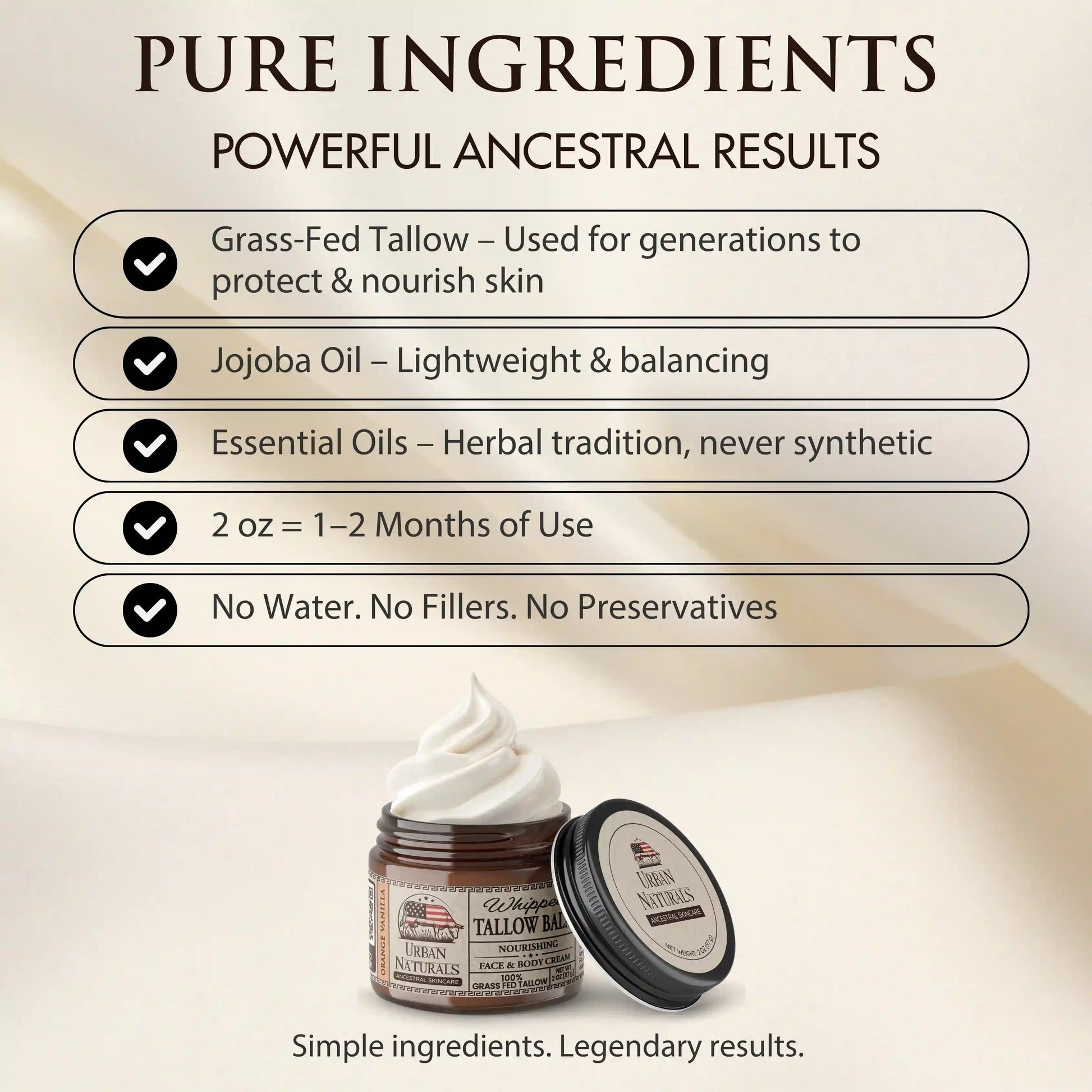 Experience softer, more radiant skin after just one use! Treat yourself to the ultimate in pure and natural skincare with our whipped tallow balm—the perfect blend of ancestral skincare and modern luxury.